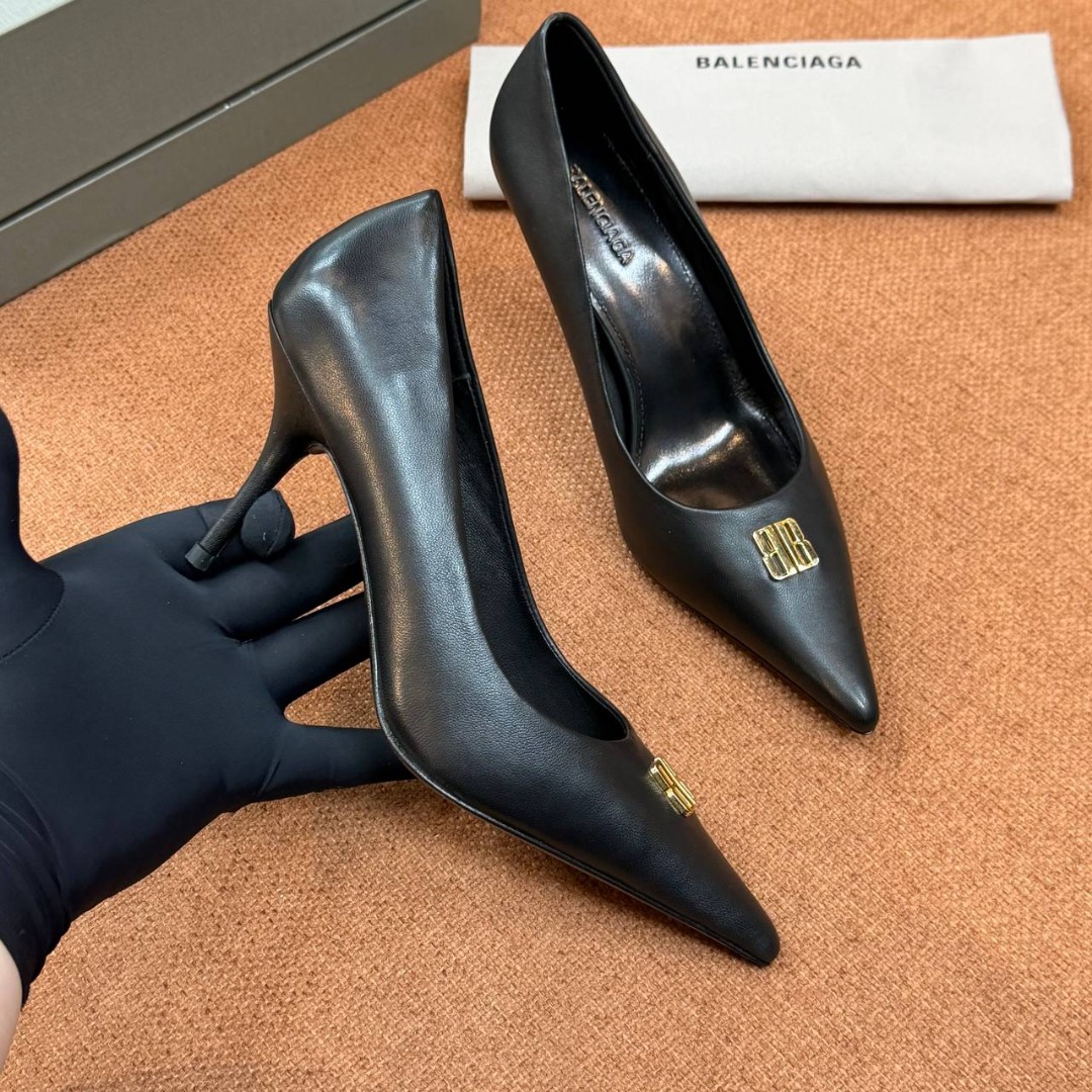 Женские кожаные туфли лодочки Balenciaga черные каблук 8,5 см 2026