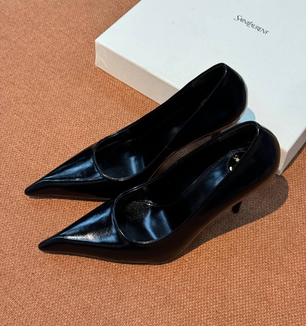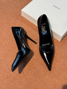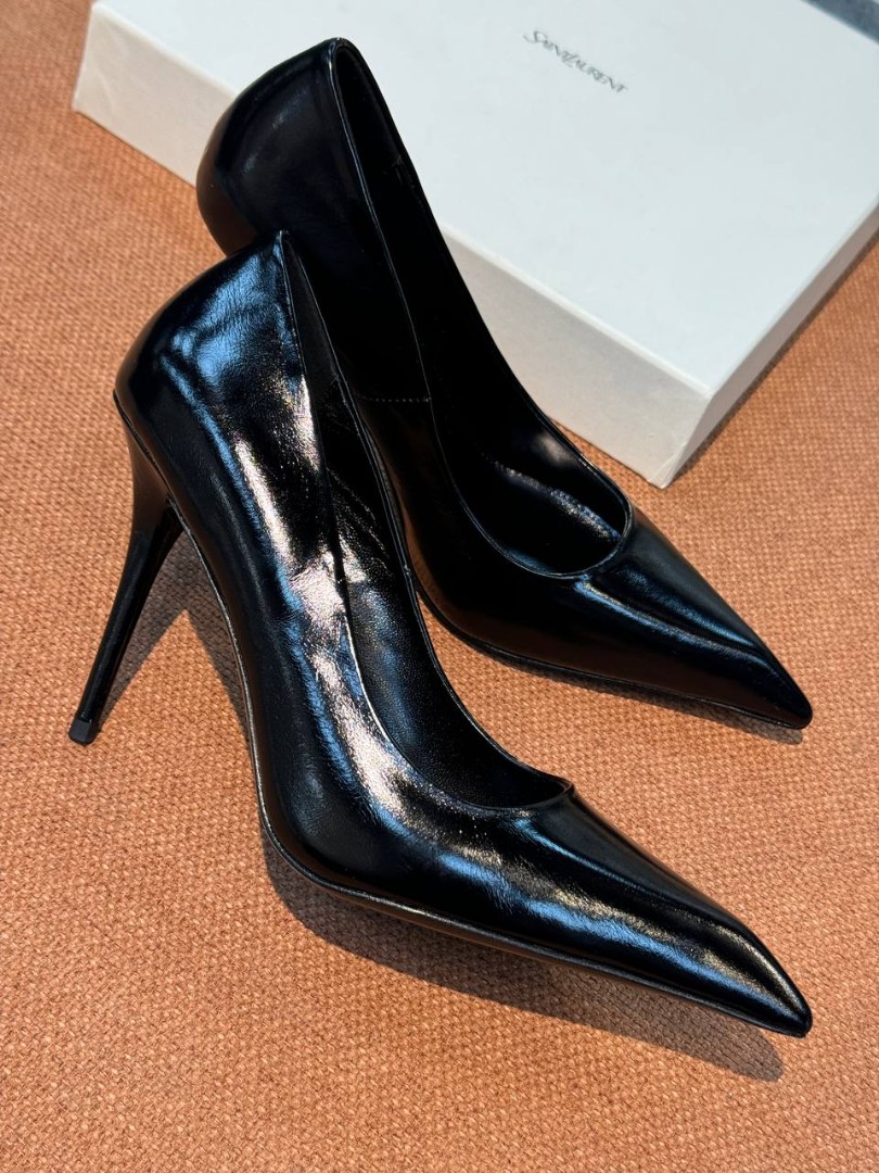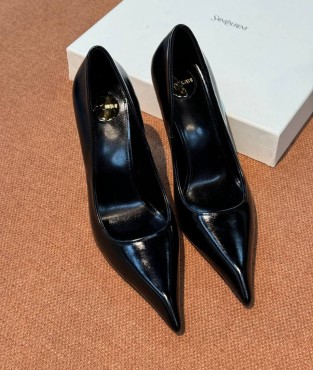 Женские кожаные туфли лодочки Saint Laurent черные лакированные каблук 10 см 2026