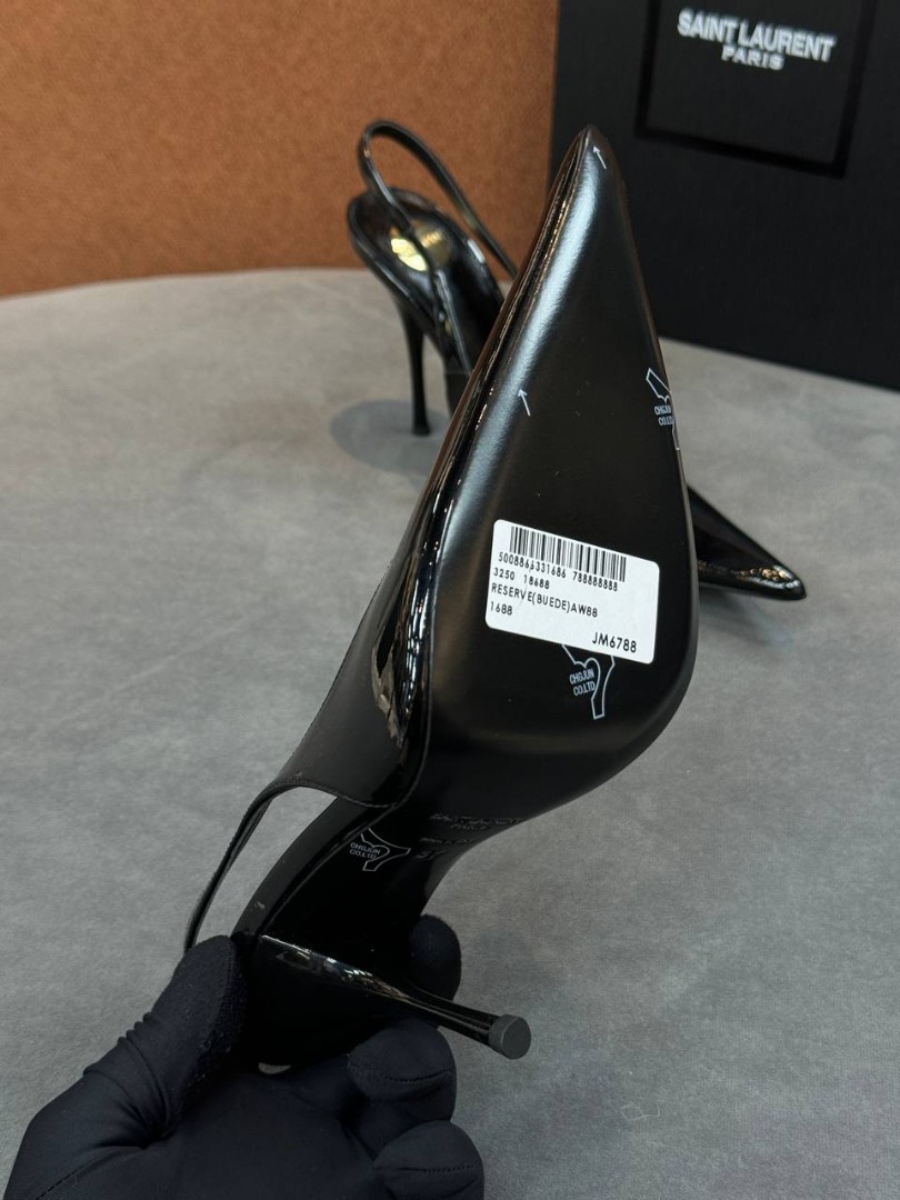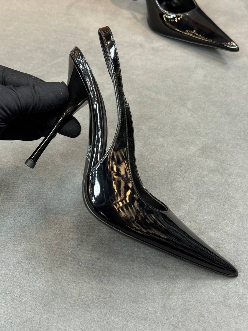 Женские кожаные туфли Saint Laurent черные лакированные каблук 10 см 2026