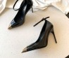 Женские кожаные туфли Saint Laurent черные лакированные с ремешком каблук 11 см 2025