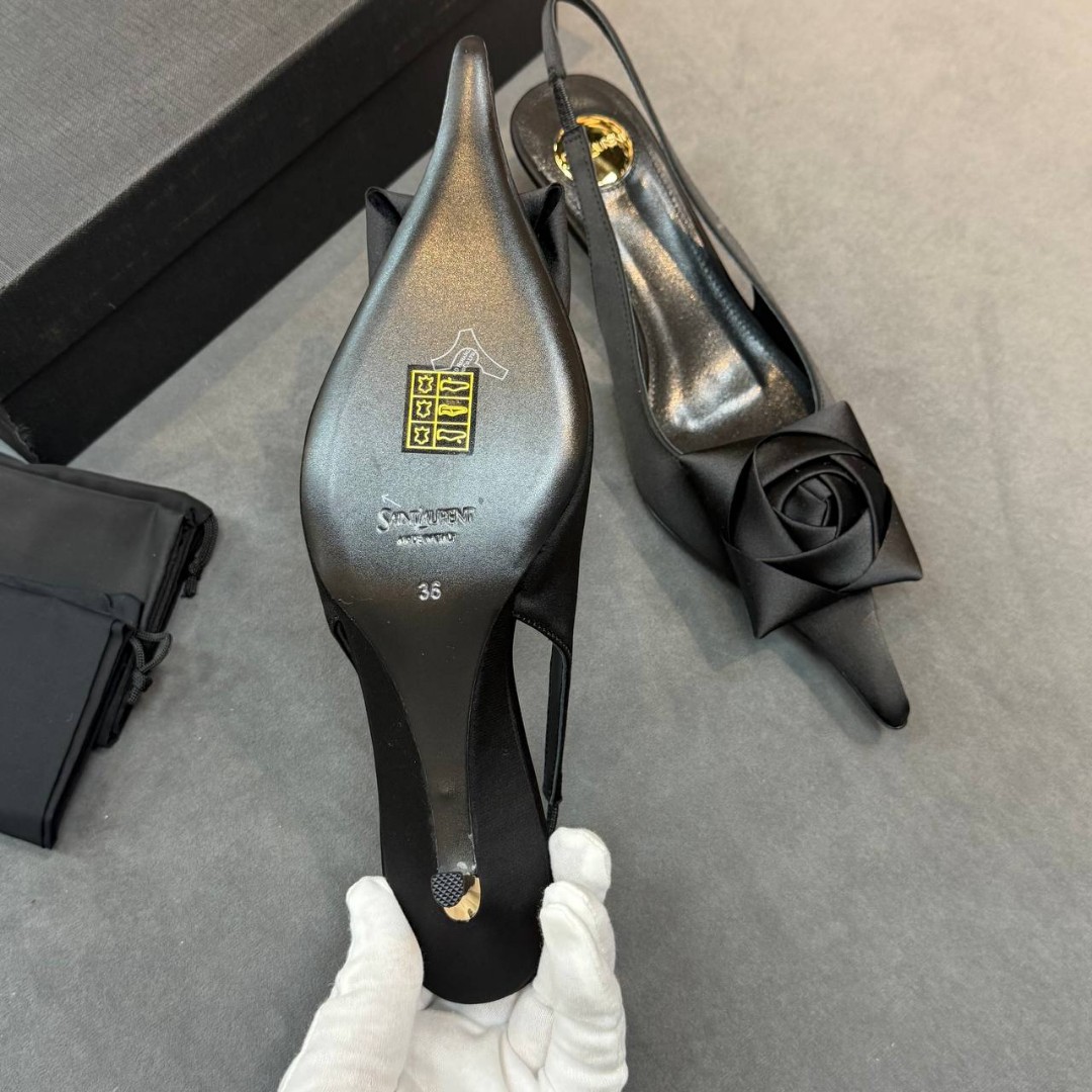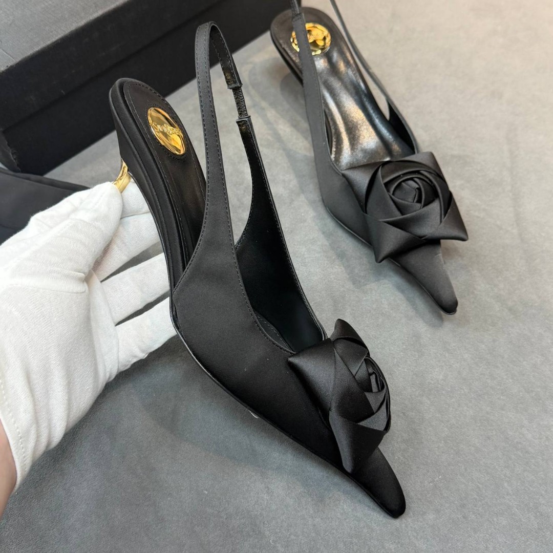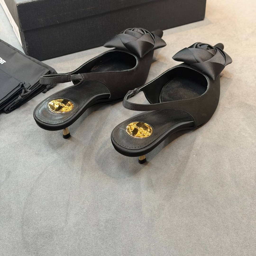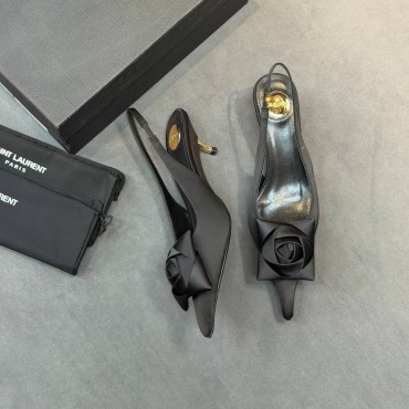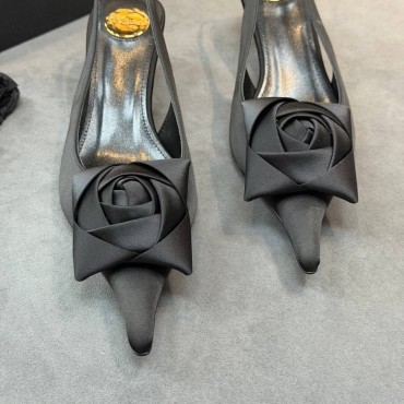 Женские текстильные туфли Saint Laurent черные с цветком каблук 5 см 2026