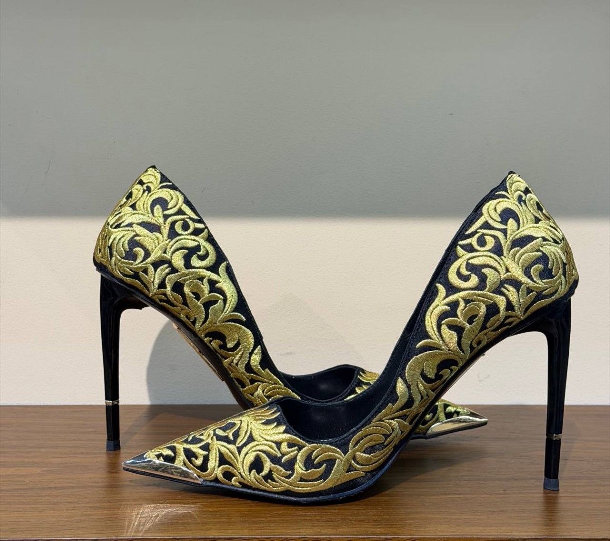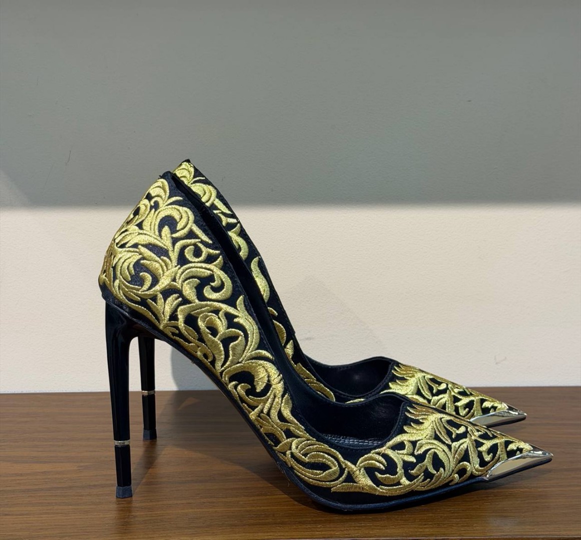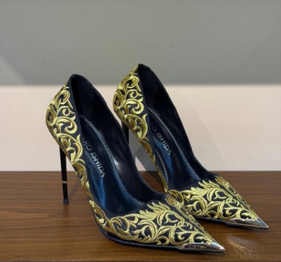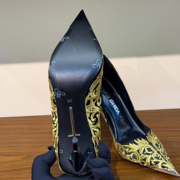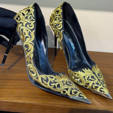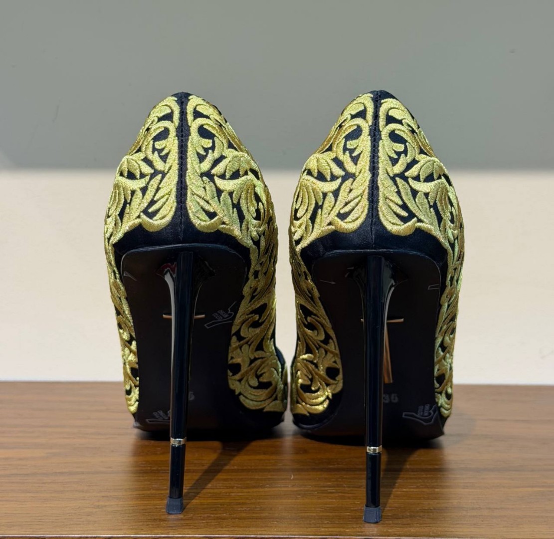 Женские текстильные туфли Taro Ishida черные с золотой вышивкой каблук 11 см 2026