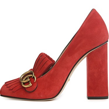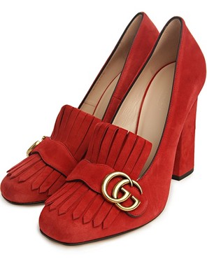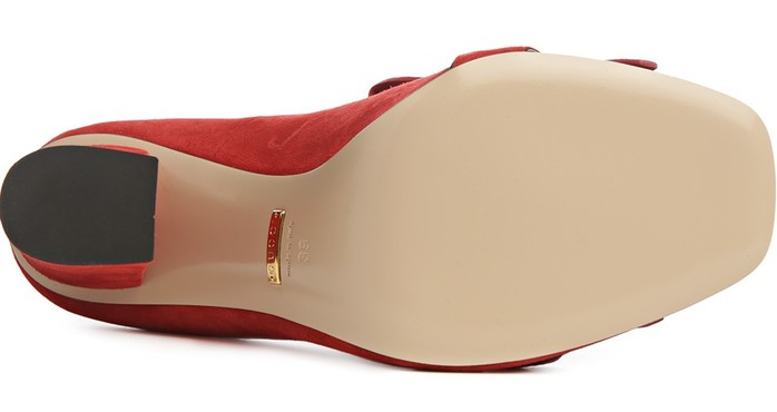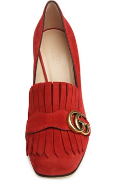 Женские замшевые летние туфли Gucci Marmont красные с пряжкой