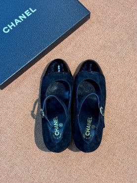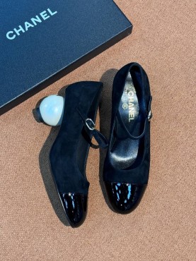 Женские замшевые туфли Chanel черные с круглым каблуком 6 см 2025