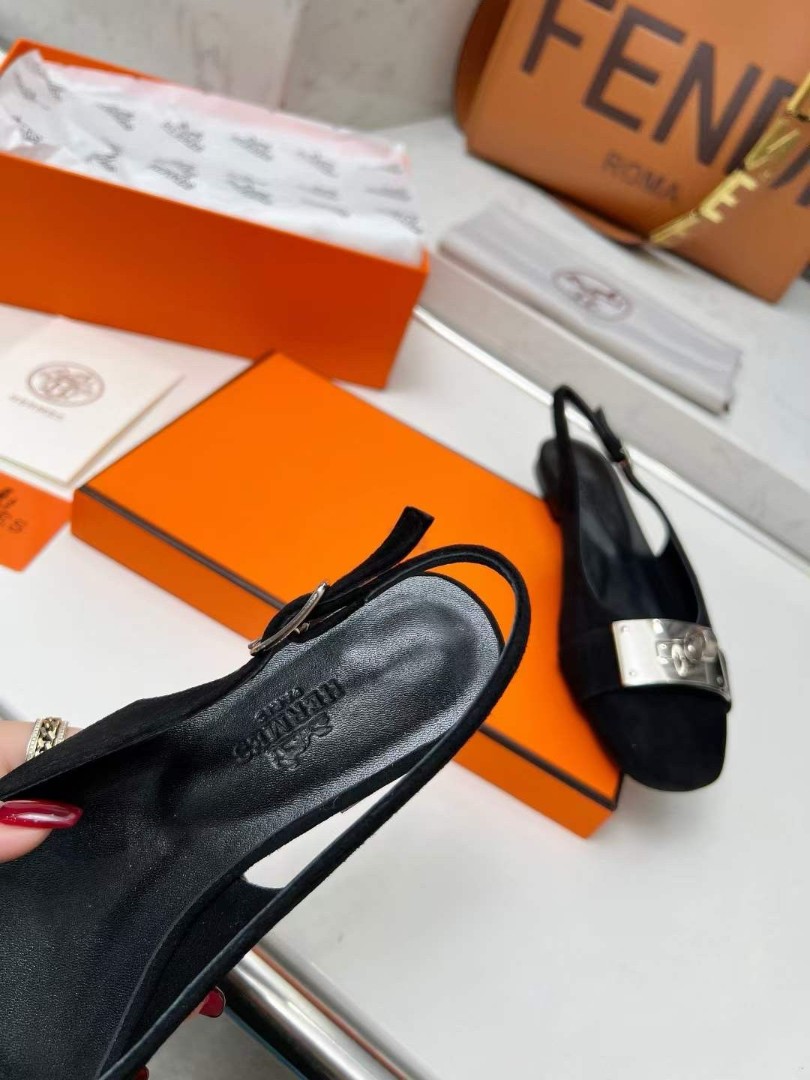 Женские замшевые туфли Hermes 2024 черные с пряжкой с палладиевым покрытием