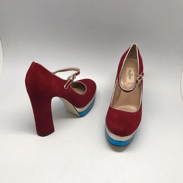 Женские замшевые туфли на платформе Valentino Garavani Rockstud красные