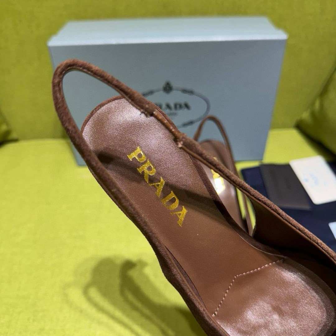 Женские замшевые туфли Prada коричневые каблук 7,5 см 2025
