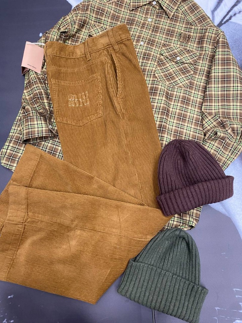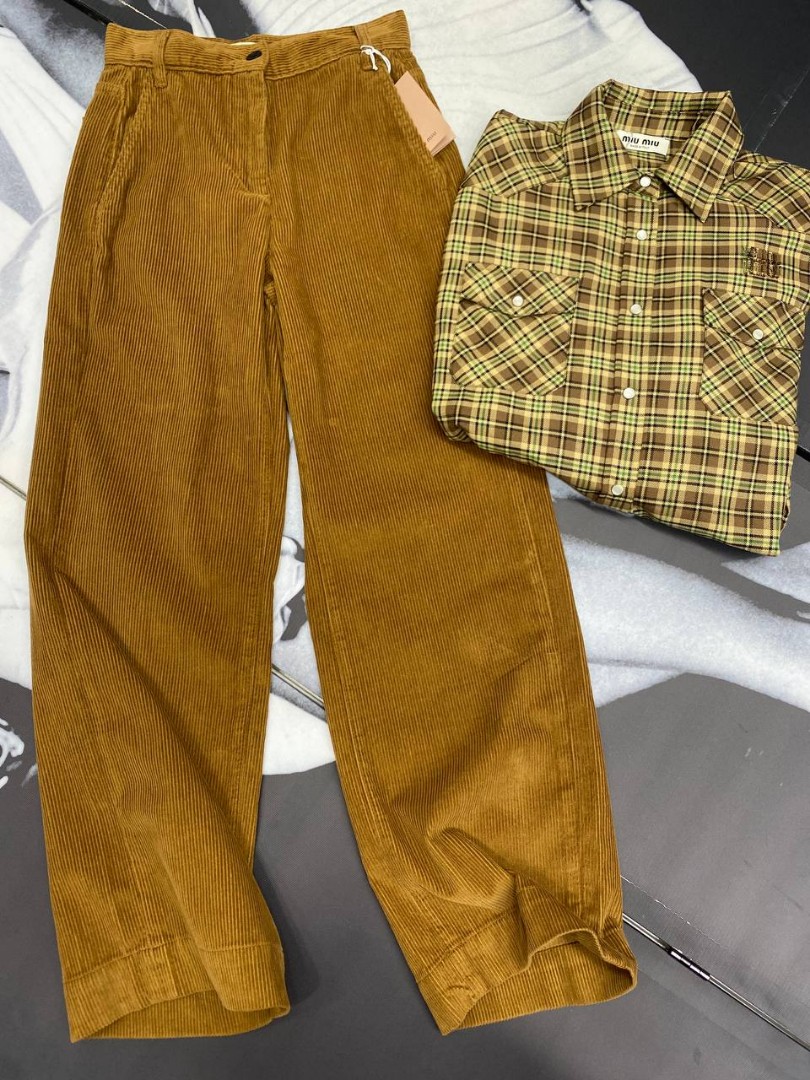 Женские вельветовые брюки Miu Miu коричневые 2025