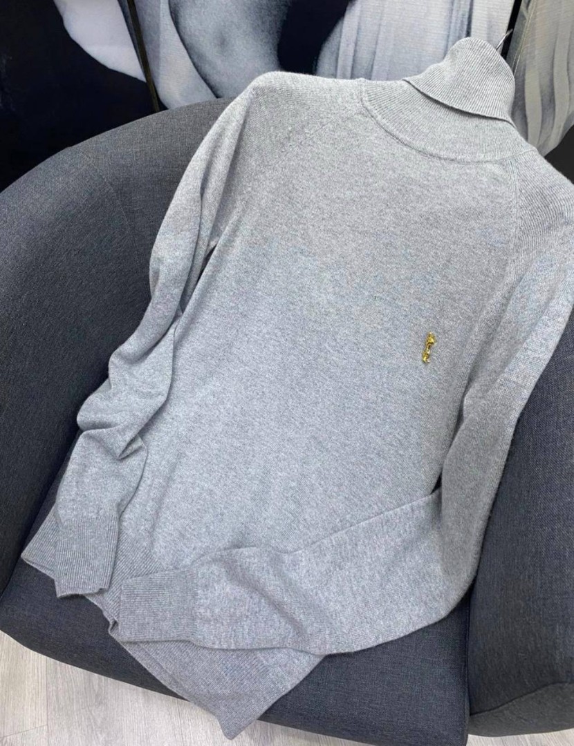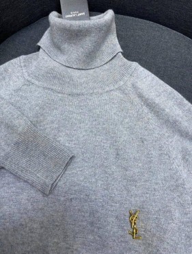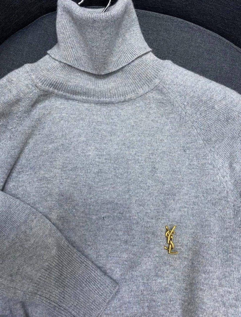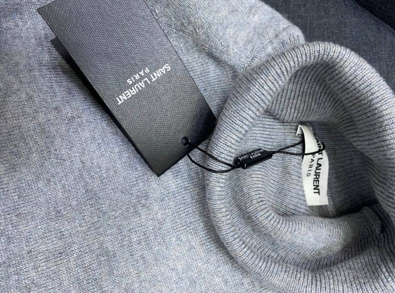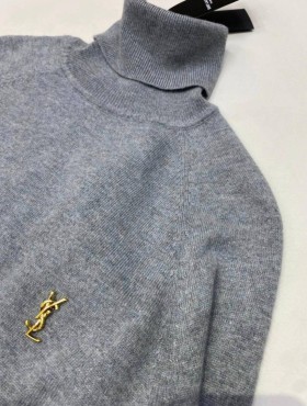 Женский кашемировый джемпер Saint Laurent серый с брошью 2025