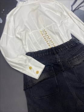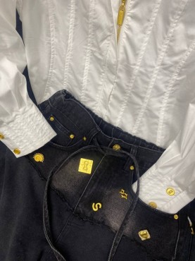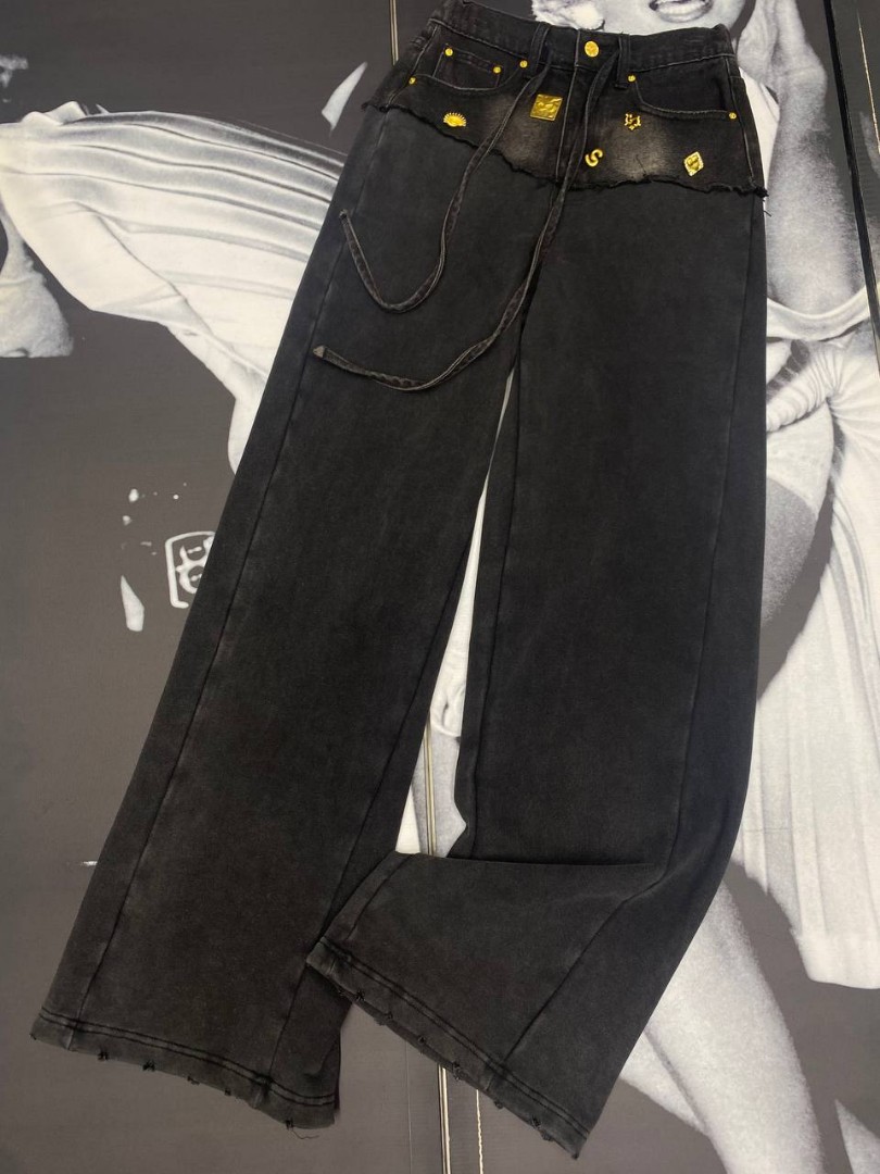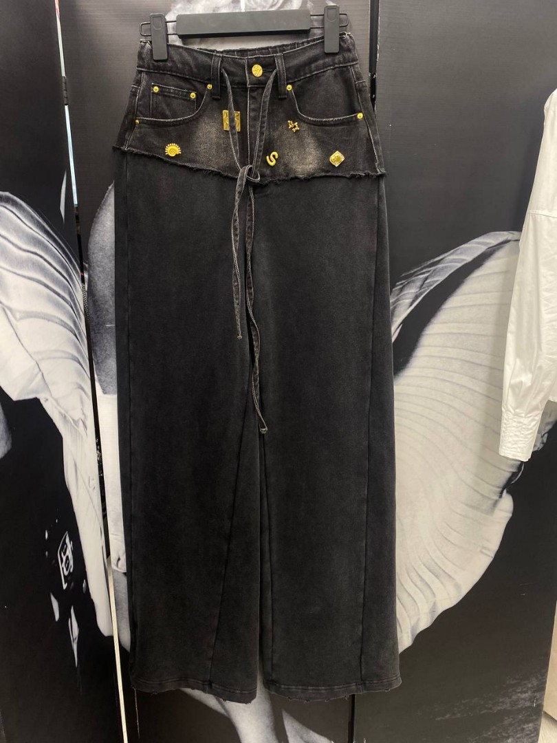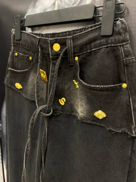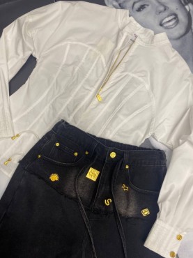 Женские джинсы Schiaparelli черные с золотыми украшениями на поясе 2025