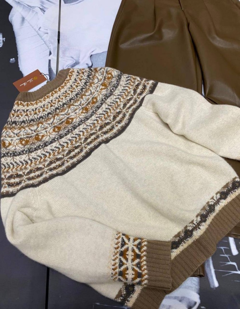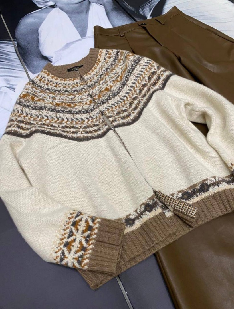 Женский кардиган Loro Piana бежевый с коричневым 2025