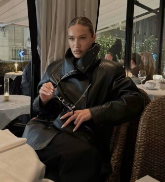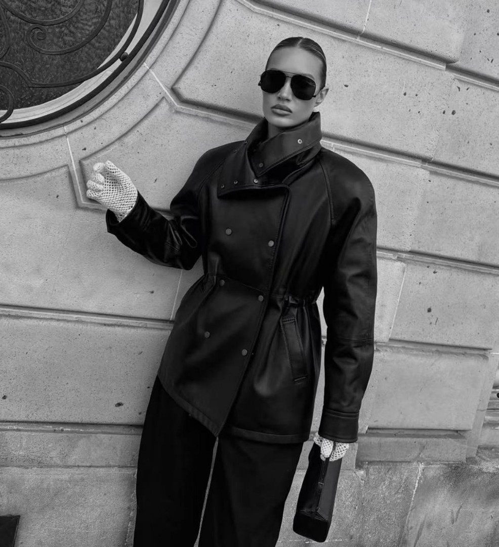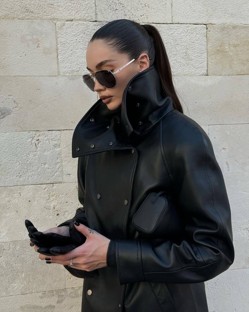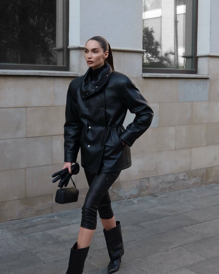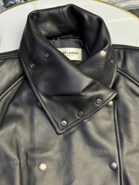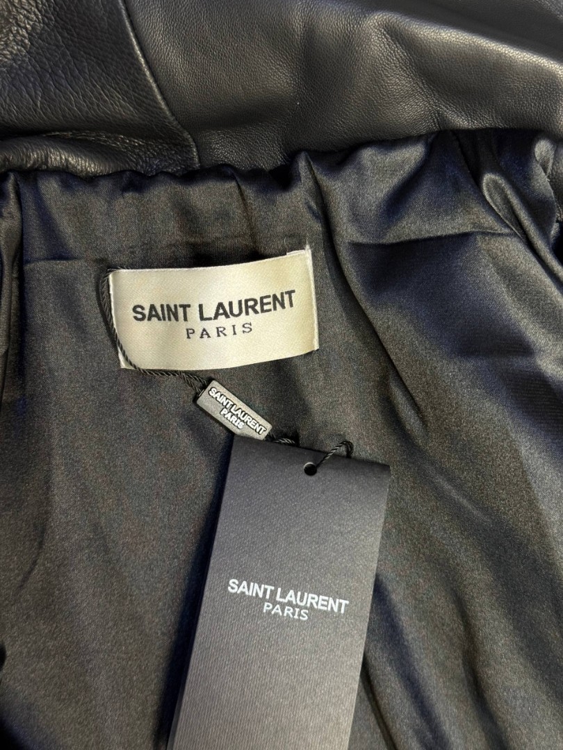Женская кожаная куртка Saint Laurent черная приталенная 2025