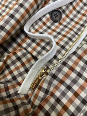 Женская куртка Miu Miu коричневая в клетку с капюшоном 2025