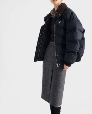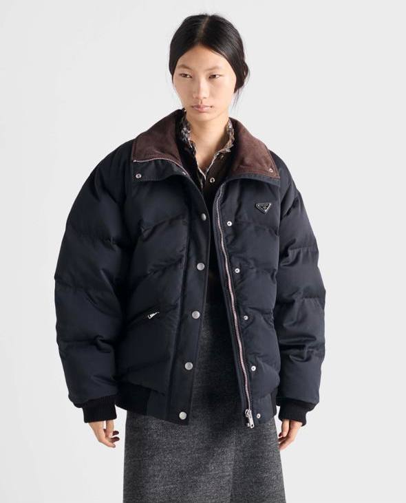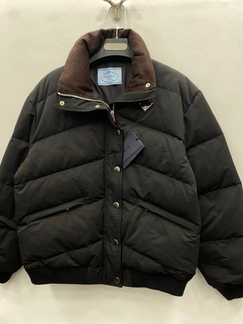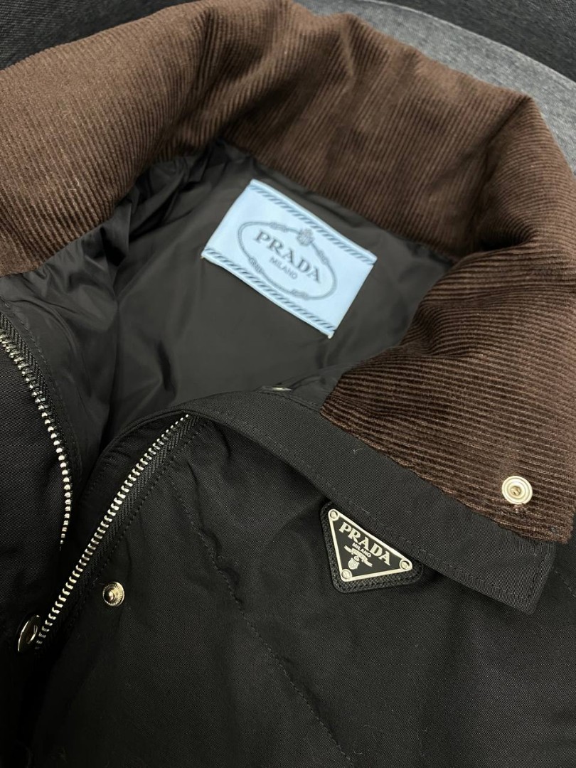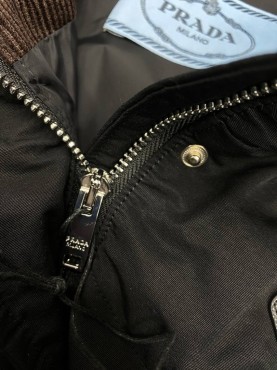 Женский пуховик Prada черный с прострочкой 2025