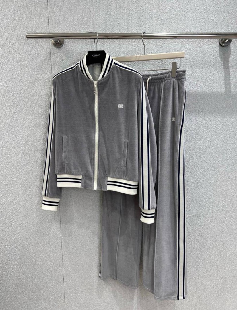 Женский спортивный велюровый костюм Celine серый 2025