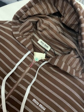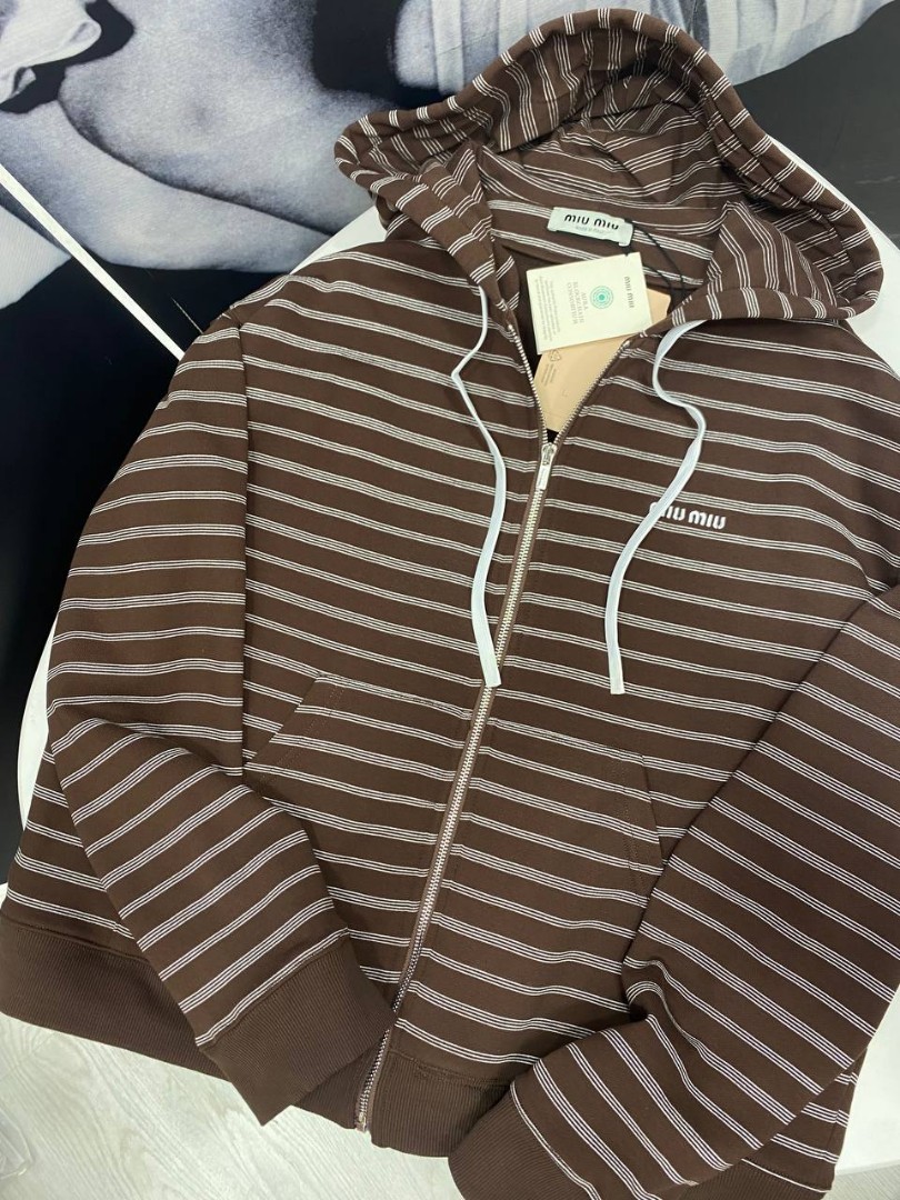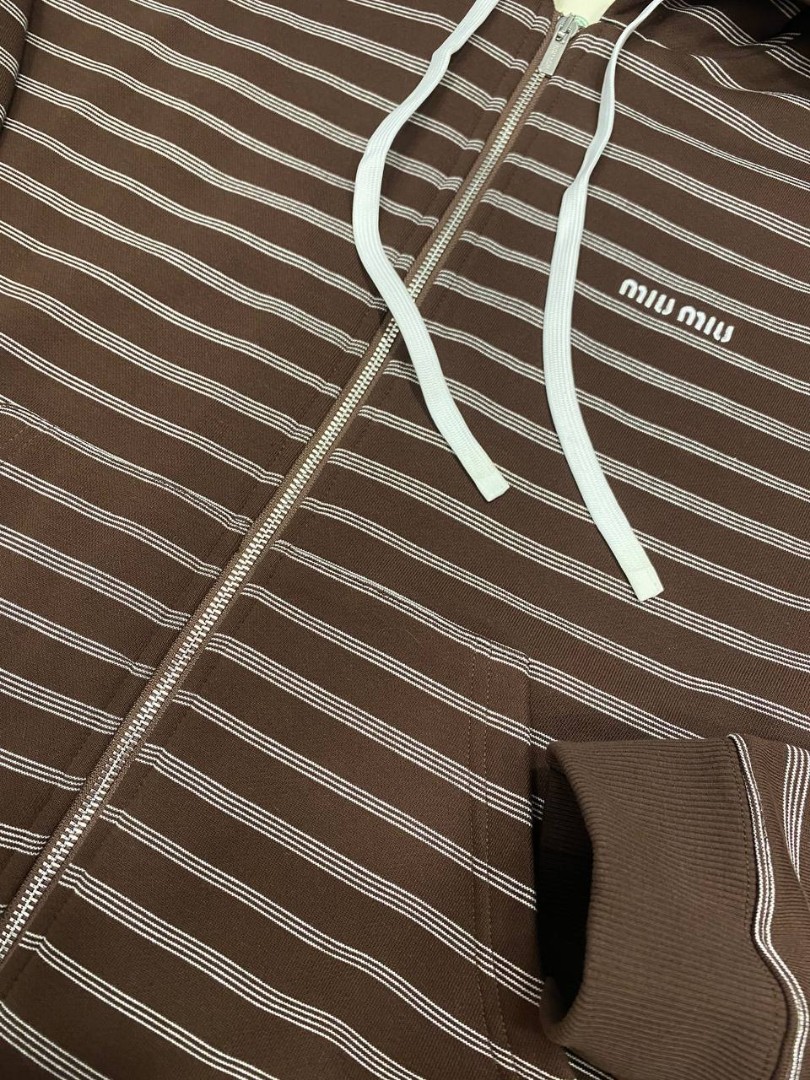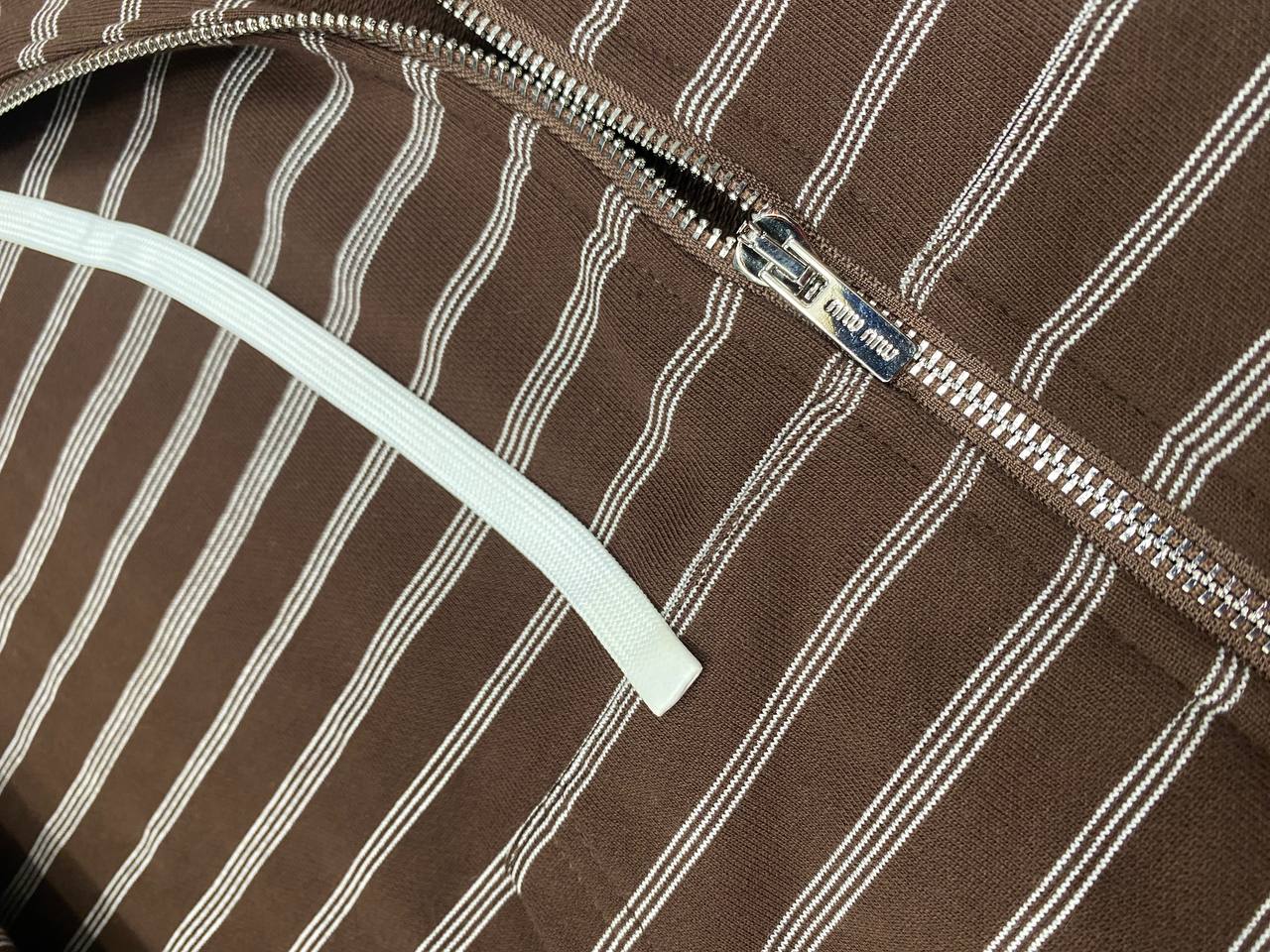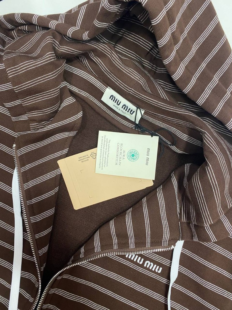 Женская толстовка на молнии Miu Miu коричневая в полоску 2025