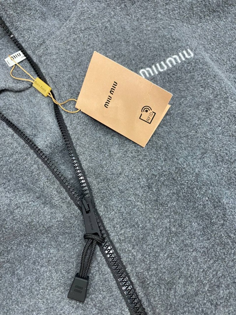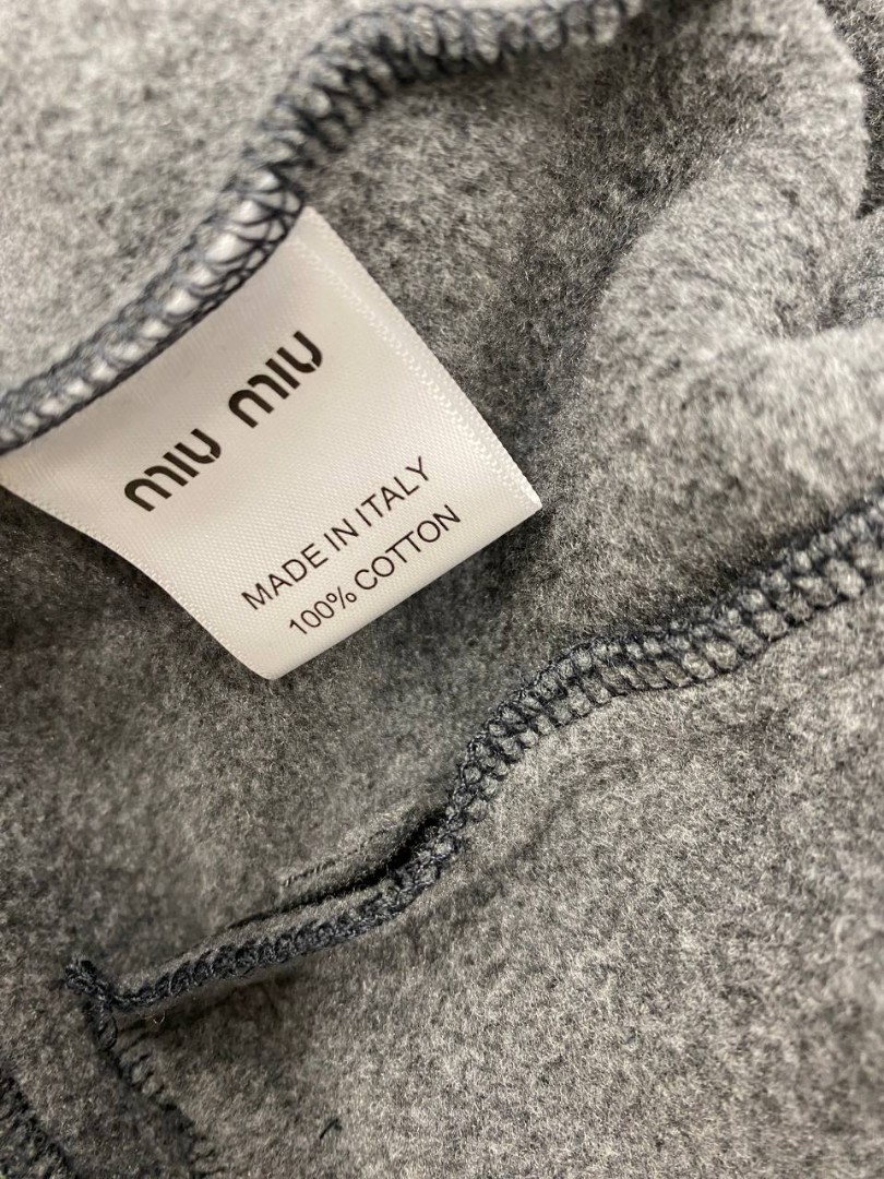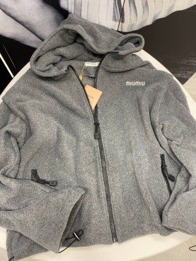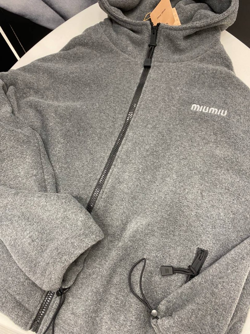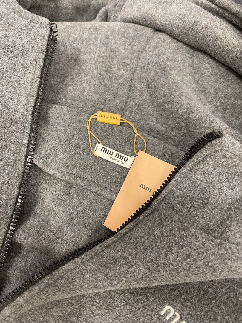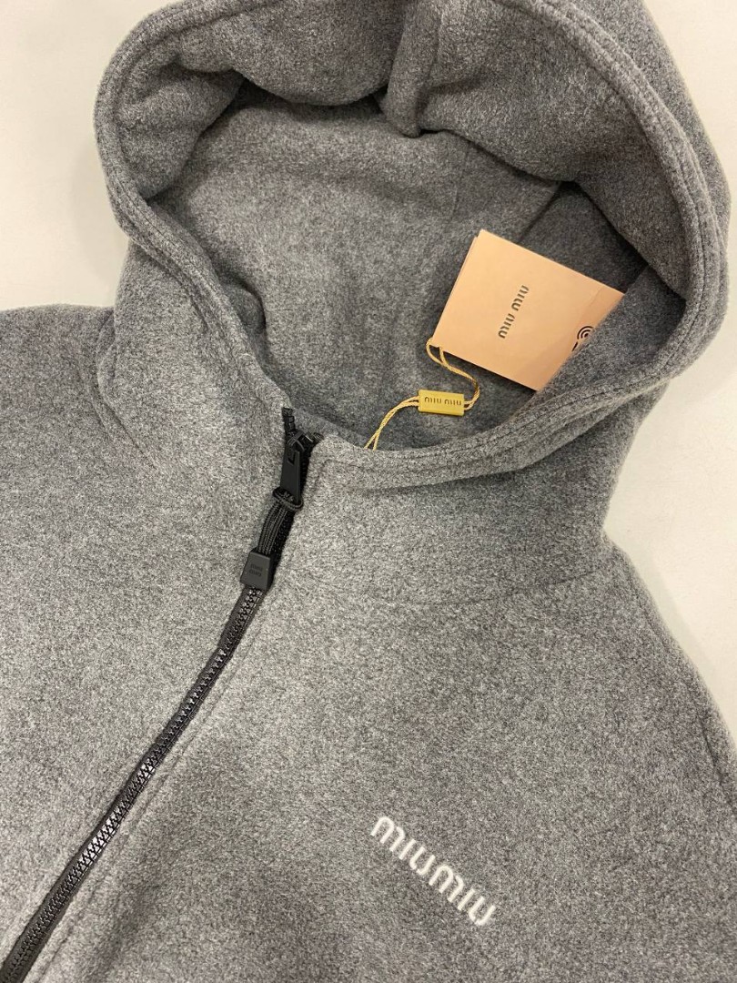 Женская толстовка на молнии Miu Miu серая с капюшоном 2025