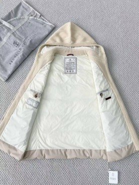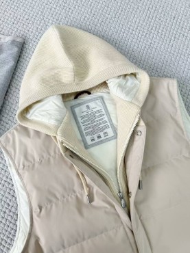 Женский жилет Brunello Cucinelli с текстильным капюшоном бежевый 2025