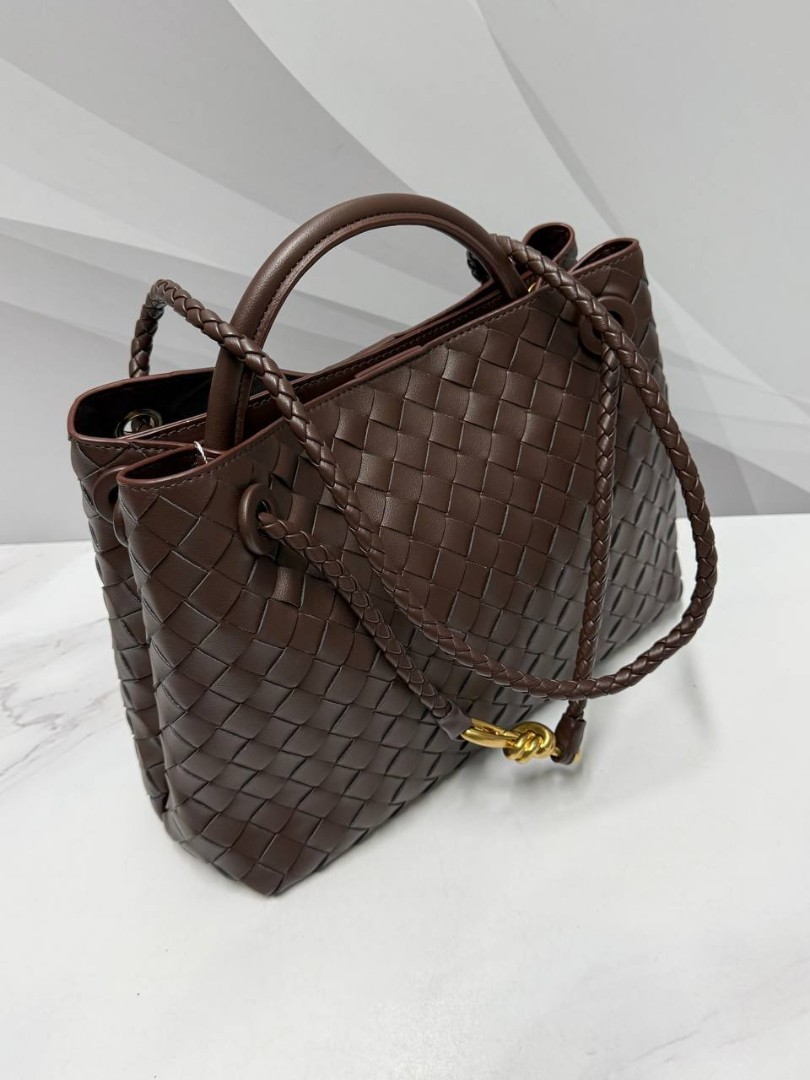 Женская кожаная сумка Bottega Veneta 30х23х16 коричневая 2025