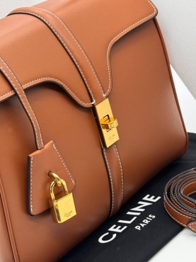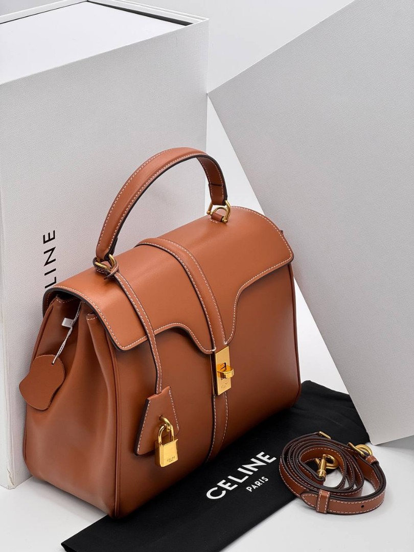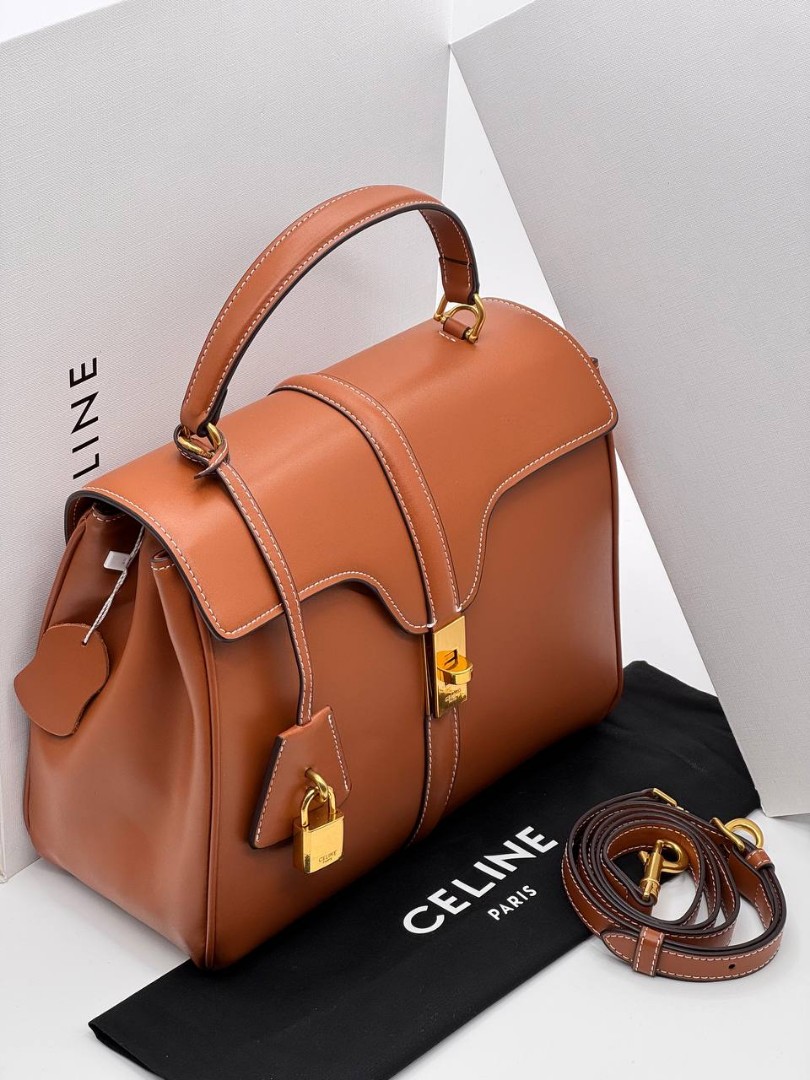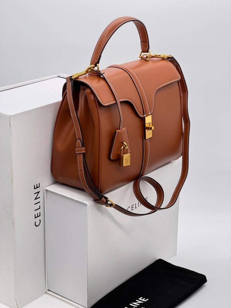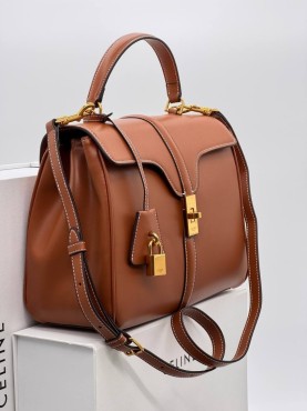 Женская кожаная сумка Celine коричневая 27х20 см 2025