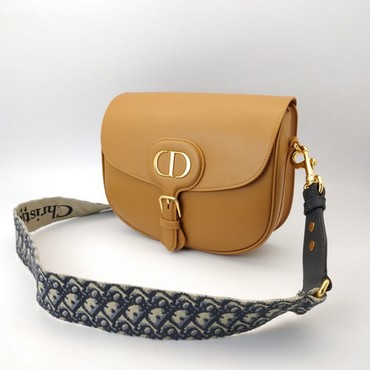 Женская кожаная сумка Christian Dior Bobby L коричневая с широким ремнем