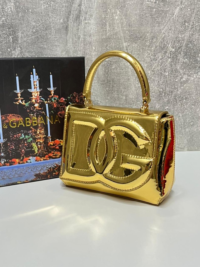 Женская кожаная сумка Dolce & Gabbana золотая лакированная 16х13х6 2024