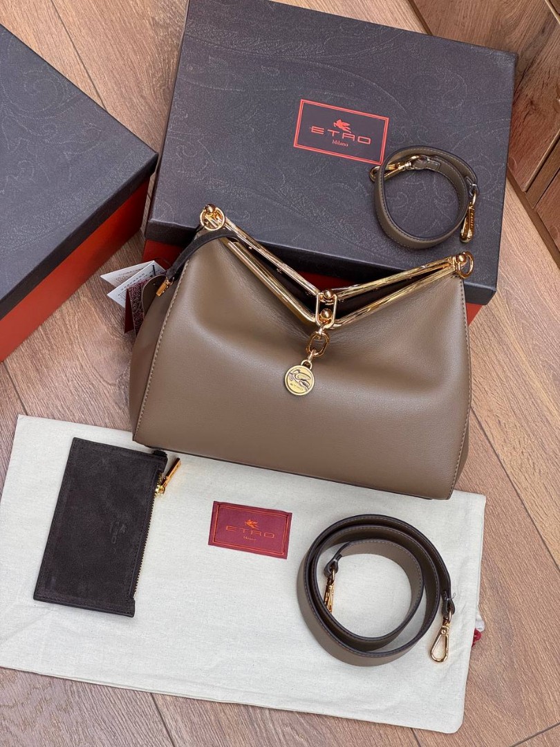 Женская кожаная сумка Etro 28х20х11 коричневая 2025