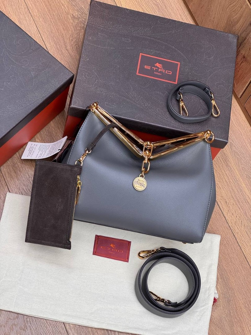 Женская кожаная сумка Etro 28х20х11 серая 2025