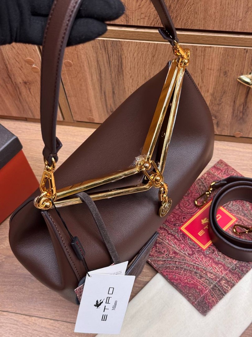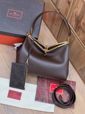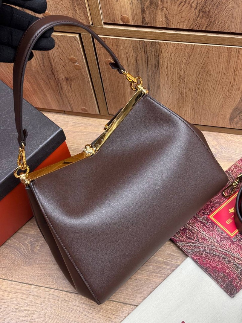 Женская кожаная сумка Etro 28х20х11 темно-коричневая 2025