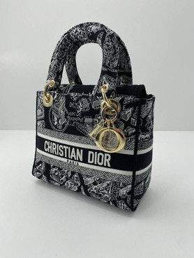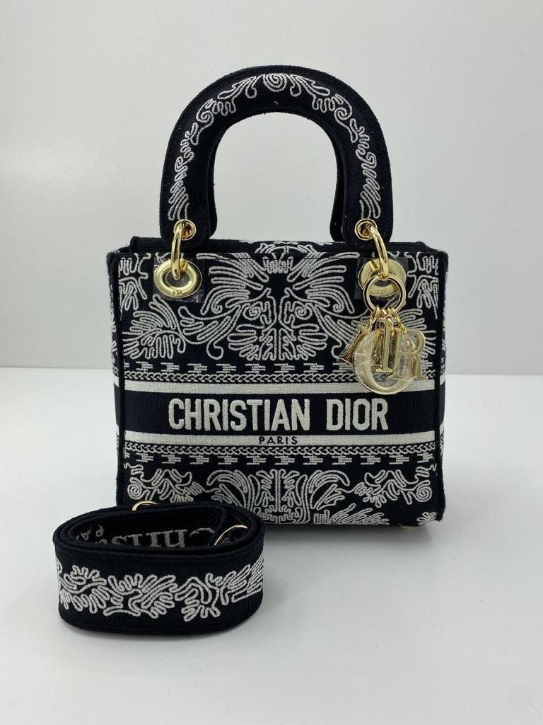 Женская текстильная сумка 24х20 Christian Dior 2023-2024 черная с белым рисунком