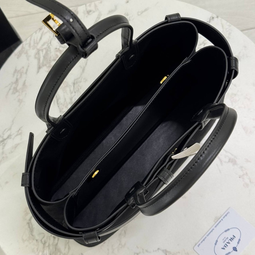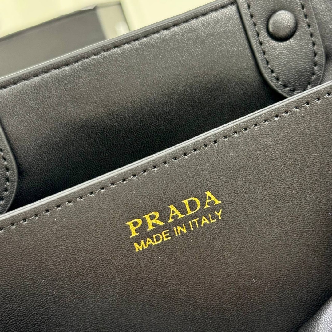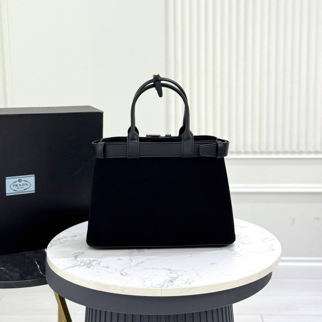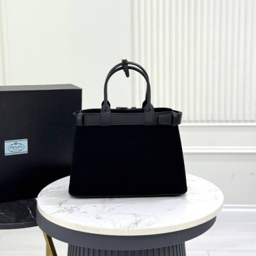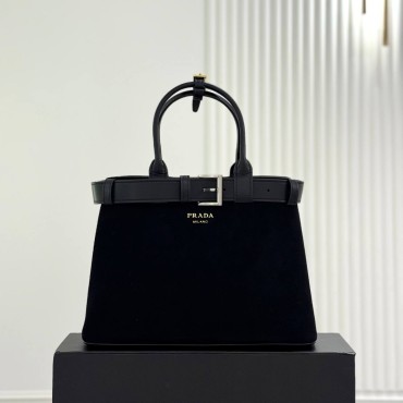 Женская замшевая сумка Prada черная с кожаными элементами 33х23 2025