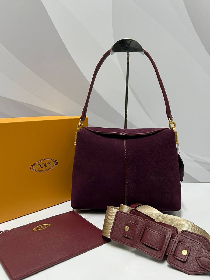 Женская замшевая сумка Tod's бордовая 24х17х9 2025